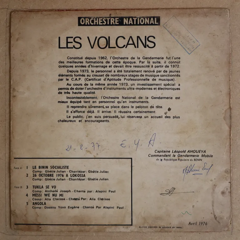 LES VOLCANS DE LA GENDARMERIE - S/T Le Benin socialiste