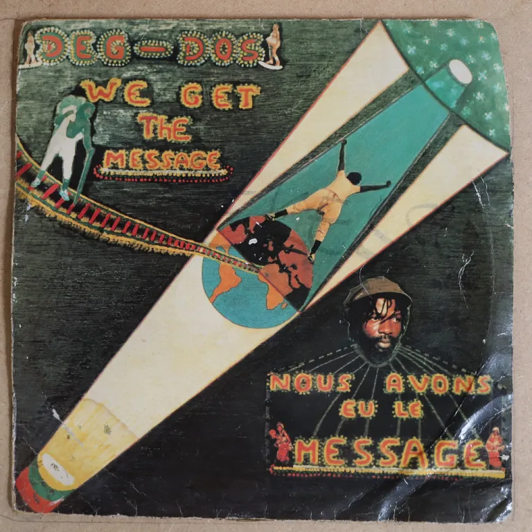 Record missing, cover only w/ strong aging & dirt, narrow bite on top mouth, writings, warp & light brown water damage