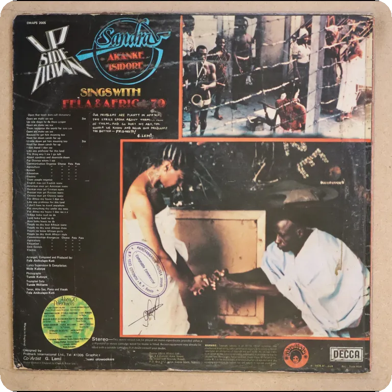 Another amazing afrobeat lp by the Nigerian sax player. Sleeve has creases, dirt & aging, writings on B label, record plays very nicely with minimal very occasional noise only despite some opaque pressing patches, cleanest copy in ages