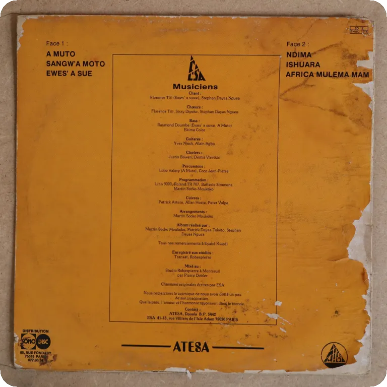 Cover only, no vinyl. Sleeve has large peel off & mold wear long spine, peel off on top, small peel off along bottom, rubber stamps & writings on front,