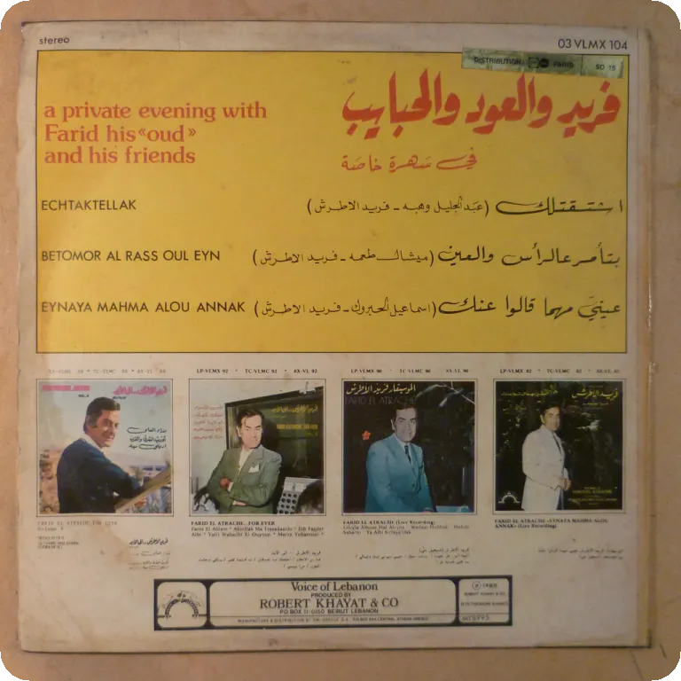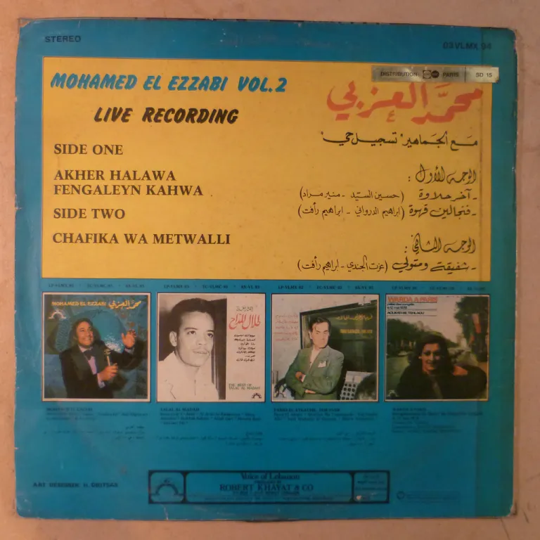Classical Oriental big band w/ the Egyptian leading singer as recorded live. Some wear on cover, record has very reasonable to hArdly any noise from marks depending on parts.