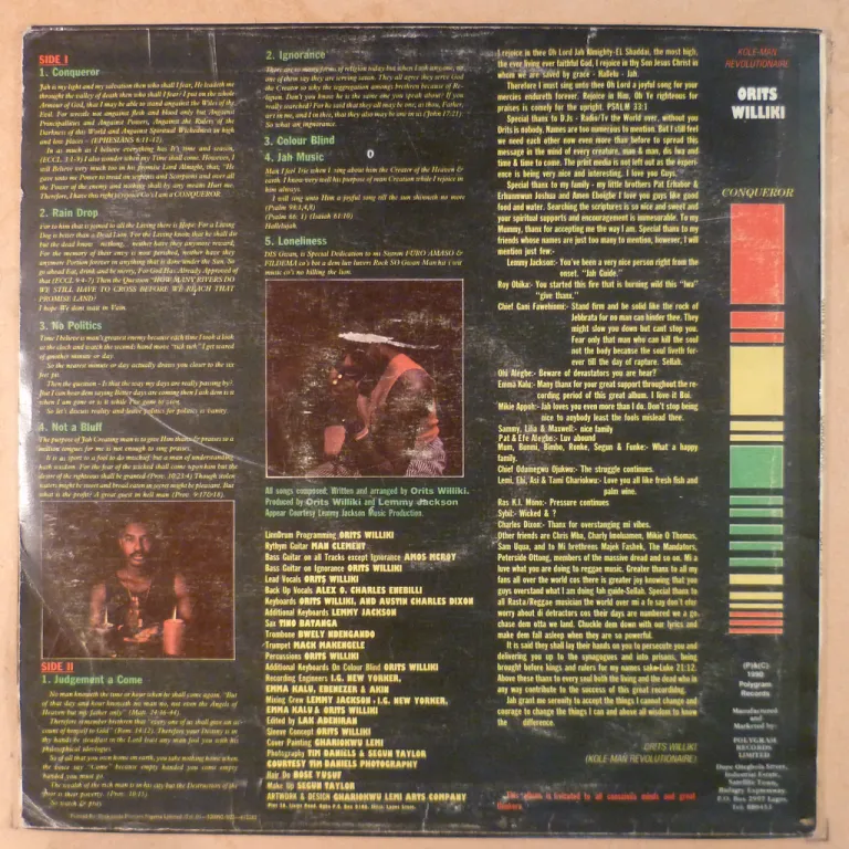 several roots reggae tracks & an afro rock / afro psych & on this scarce Nigerian release, some aging on cover, writings on front, ringwear, record plays quite nicely despite marks w/ only light noise