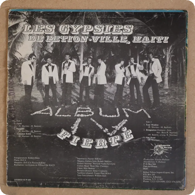 Check the super funky intro to "compas 2001" on this consistent compas masterpiece w/ fake live overdub. Sleeve has aging & dirt, split on all top, narrow bite on top mouth corner, record looks quite nice but has slightly audible noise noticeable inbetween tracks mainly & on quiet parts, very occasional clicks.