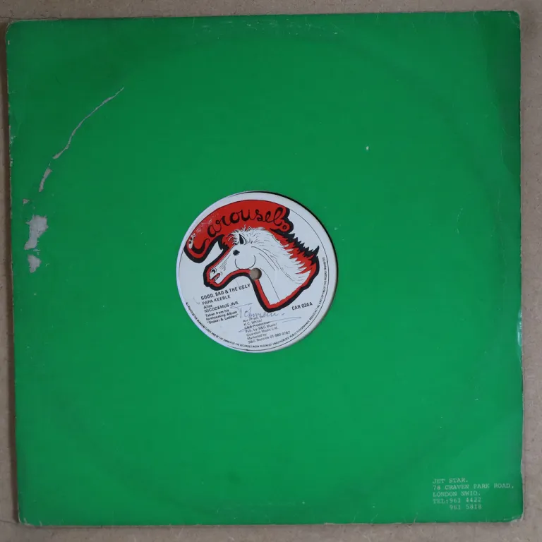 Killer roots & dub double sider maxi single only rarity. Some wear on cover, creases, light brown water damage wear, writings & dirt on labels, plays with quite reasonable to very light noise on B