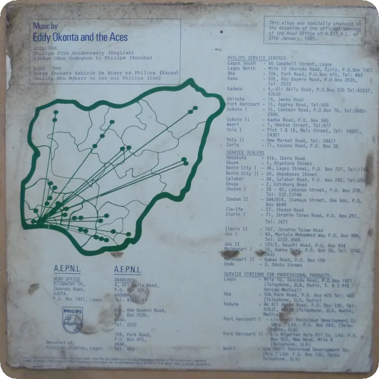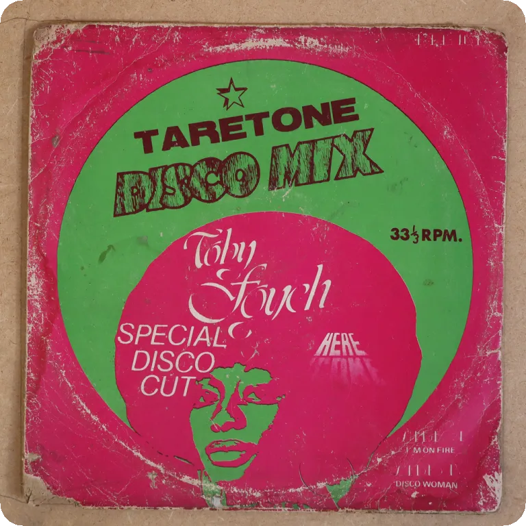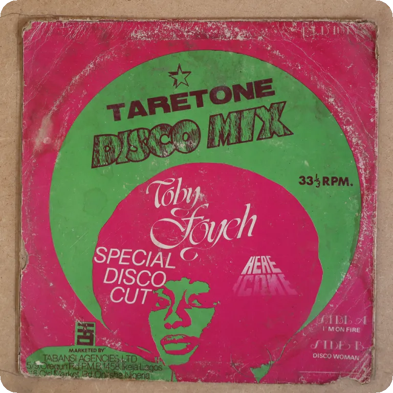 One of the very best roots reggae tunes to come out of Nigeria "she's my woman", also 2 other solid reggae tunes, sleeve has aging & dirt, ringwear, peel off on bottom & along spine , narrow bite & 8" split on spine, bump on bottom mouth, small hole on bottom front, , 3" split on bottom, record plays w/ light to hardly noticeable noise, VG to solid VG+ despite marks.