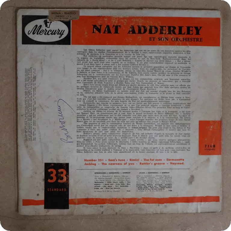 Mainly jazzy biguines, including multiple instros, on this compilation released as a tribute to one of Martinique's leading pre war alto sax players. Mini peel off on front, wear on labels center holes, light noise from either pressing or heat damage on two first tunes of each side (clip 1 for example) otherwise plays really greatly despite marks.