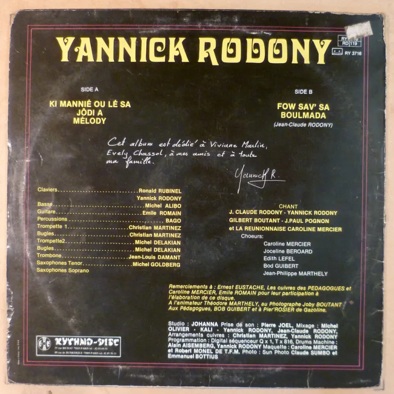 Frantic uptempo zouk tunes w/ Rubinel on synth, Michel Alibo...Light wear on cover, minor noise though has numerous marks.