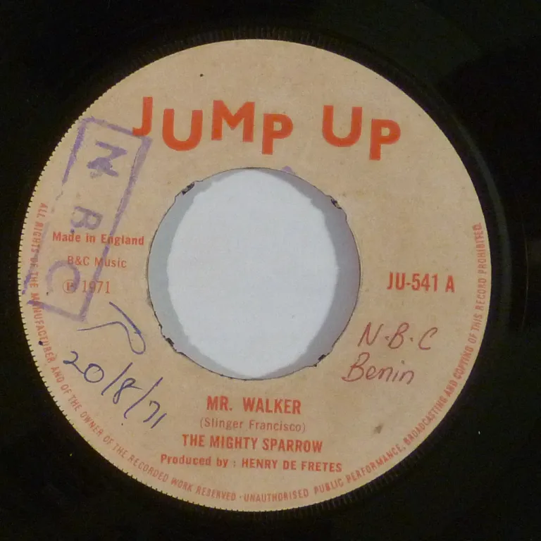An uptempo calypso floor filler on this single by one of Trinidad's legends. Writings & rubber stamps on labels. Record has marks & light to hardly noticeable noise.