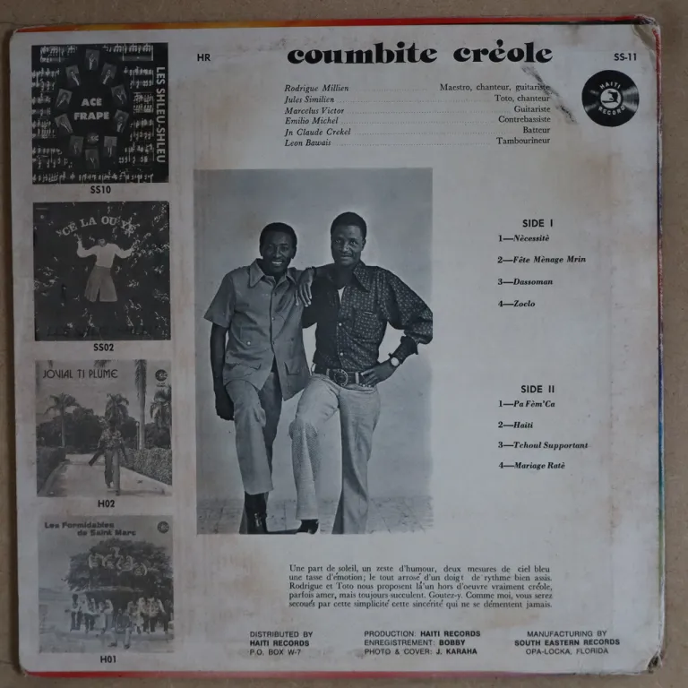 Killer acoustic guitar led tunes by the Haitian vocal duet, very similar to Trio Seleect's early albums but lesser known and underrated. Sleeve has some wear, bumps & some warp on spine corners, record has light to hardly any noise, ranges from VG to EX depending on parts.