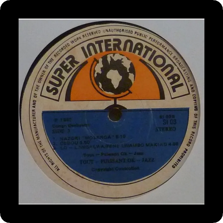 Extremely rare bootleg compilation of Congolese recordings, includes OK jazz "replubique du Zaire", "Cedou" & "Ou est le serieux" + Empire Bakuba "Nazoki" & "Likambu mabe", sleeve is missing, record