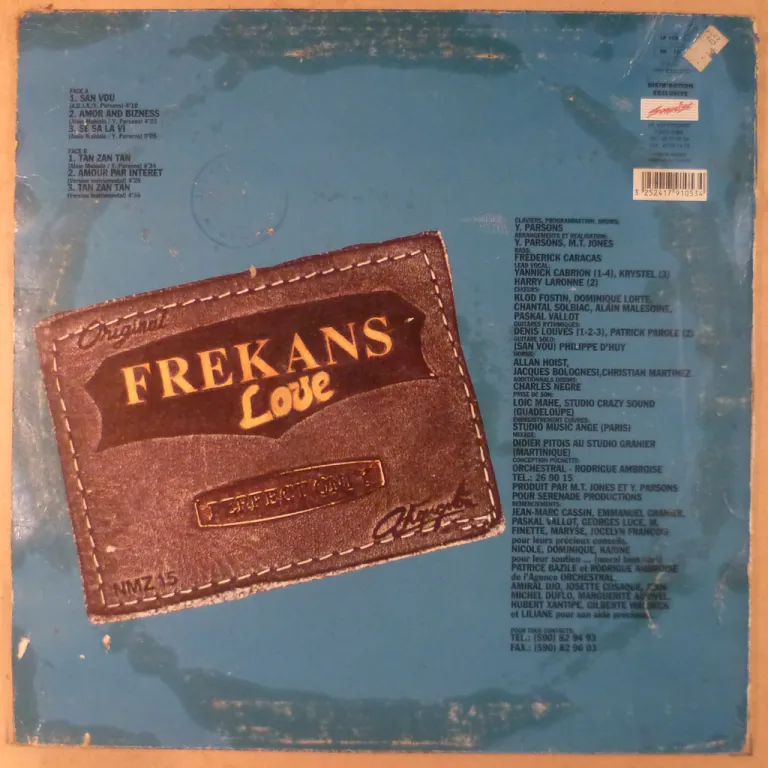 Zouk & zouk love with some club friendly tunes on this classic release. Sleeve has aging & dirt, ringwear, 2" split on bottom, large writings on front. Record has constant reasonable to very light