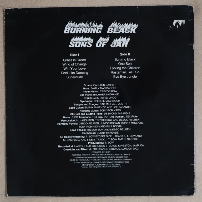 Consistent roots reggae LP, strong wear on cover, large writings on cover & labels, split on all bottom, plays with quite reasonable to light noise from numerous marks.