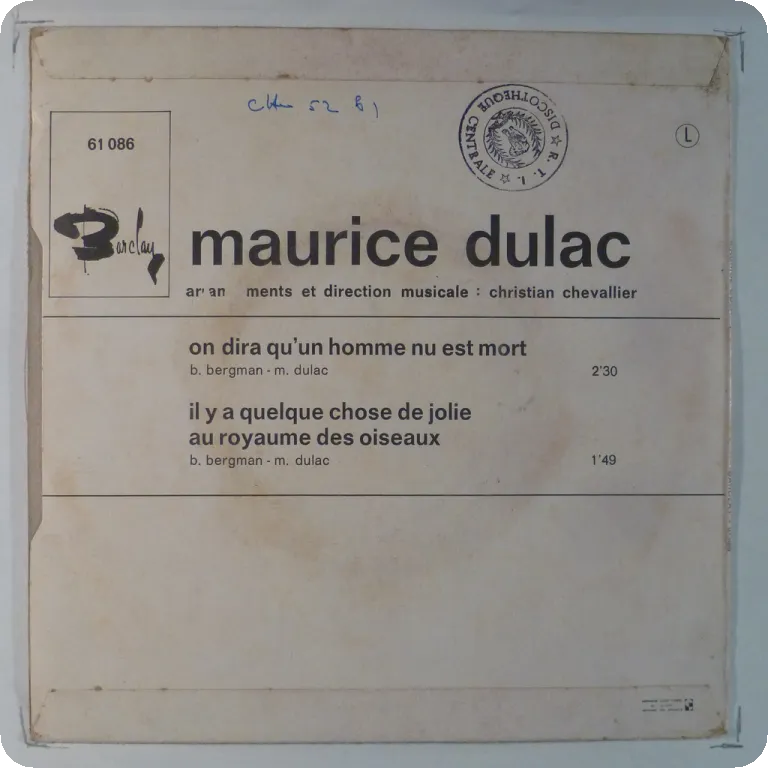 Rare LP that includes a biguine, a mazurka & a bolero, otherwise it's comic sketches w/ voice & guitar. Dirt wear.