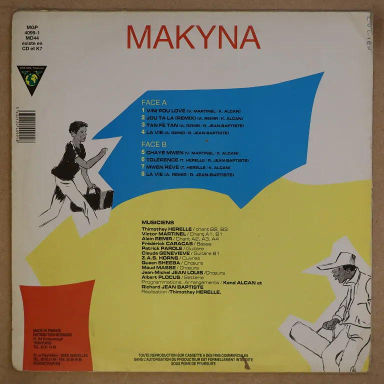 Timothey Herelle leads this zouk LP that also features such French Caribbean cats as Frederic Caracas & Patrick Parole. Sleeve has some wear, writings on front, plays with light to hardly noticeable noise from numerous surface marks.