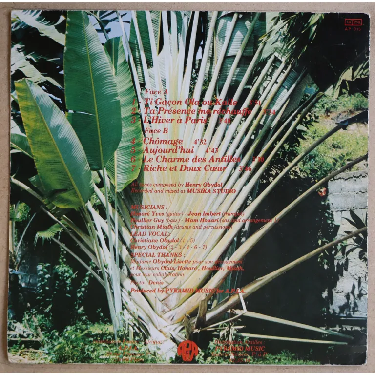 Mid tempo dancefloor cadence/compas winners and a biguine tune on this LP by the Martinique artist backed by both Caribbean & French artists and even Manou Lima on piano. Peel off on front, rubb