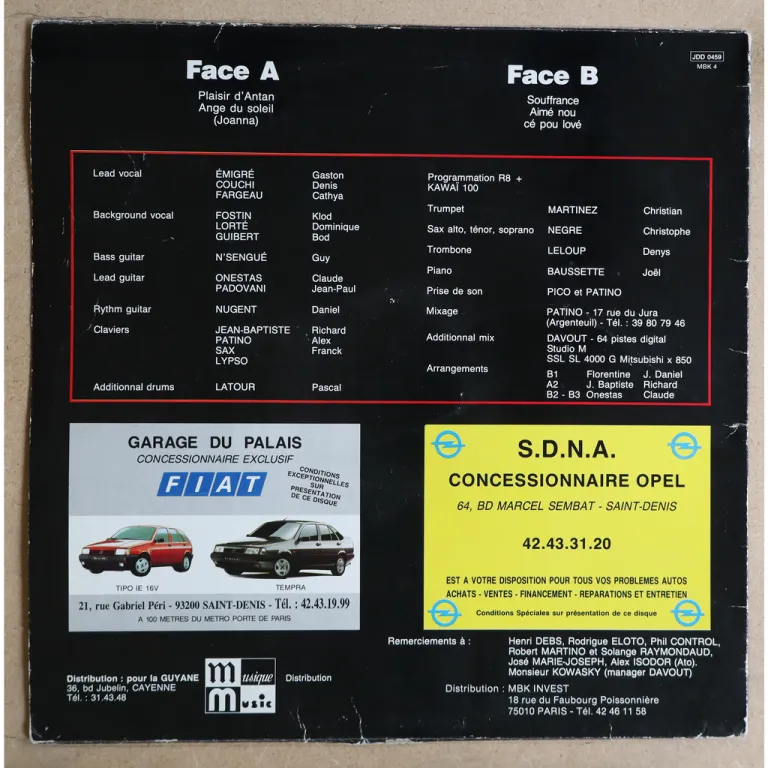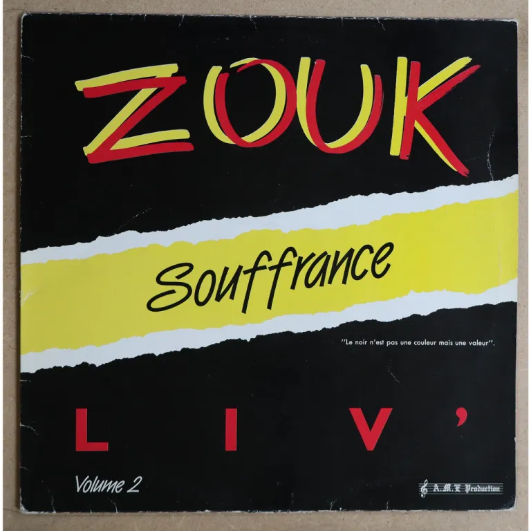 Zouk love and mid tempo zouk tunes as recorded by this Paris based French Caribbean group. Light wear/creases on cover, record has light to hardly noticeable noise, weak VG to VG++ depending on parts.