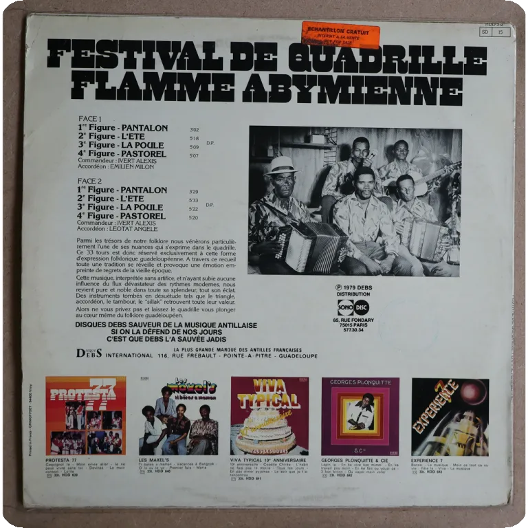 Deep & raw quadrille accordion music from Guadeloupe, promo copy with promo sticker on back, minor wear on cover, rubber stamps on cover & labels, writings on B label, record plays nicely w/ minor