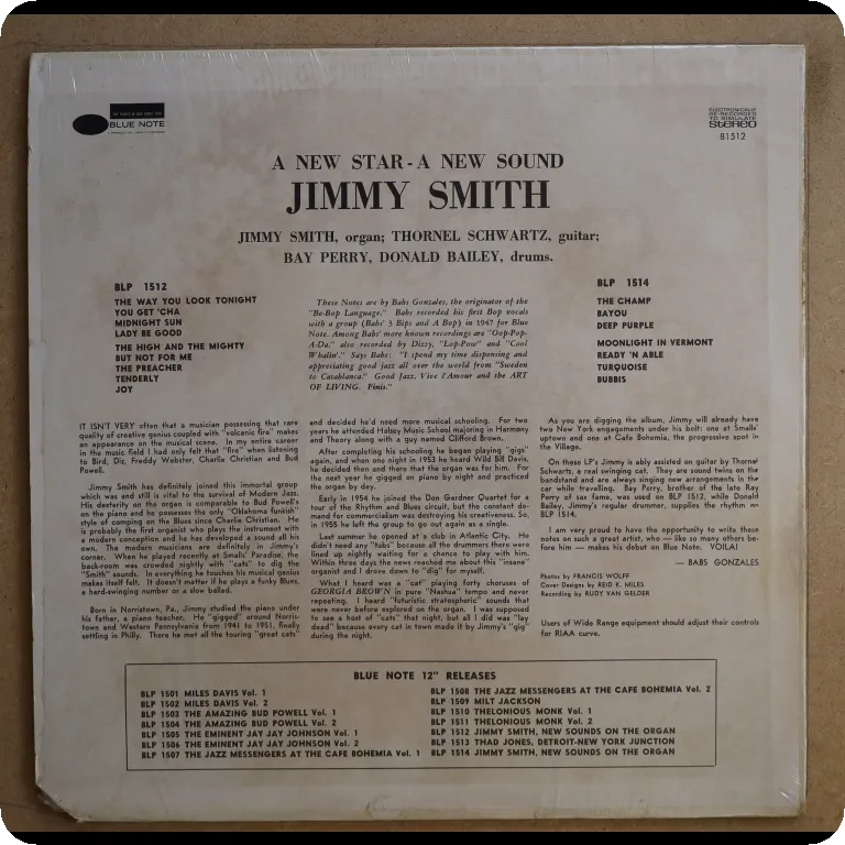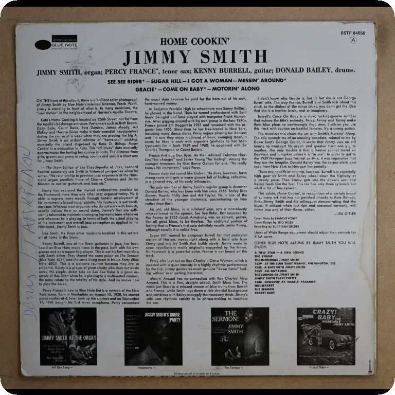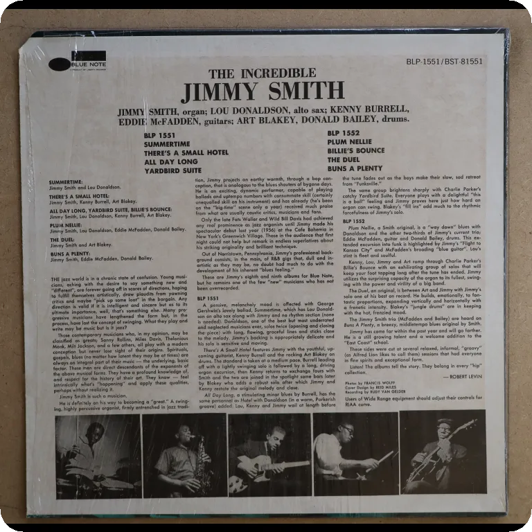 Jazz blues / soul jazz on top by the organ genius joined here by Turrentine, Burrell & Bailey. Sleeve in OG shrink with small peel off on top spine, corner punch hole on bottom spine, record has minor occasional noise w/ a bit of dirt residue, top shape.