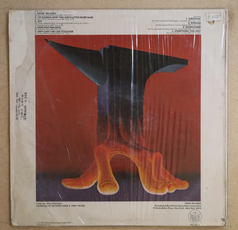 Super funky Jimmy Smith LP with great covers of Hang 'em high & I'm gonna love you just a little more baby. Still in OG shrink w/ some wear on cover, rubber stamp on back along mouth, record has light to hardly noticeable noise from marks, plays solid VG- to VG++ depending on parts. ,