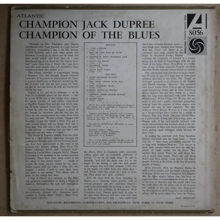 Piano solo Blues masterpice by one of the ledars of the genre, sleve has aging & dirt, some peel off, record in nice shape with only few light marks but constant very reasonable to very light pressng hiss.