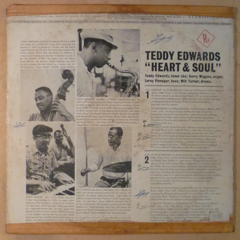 Mainly blues influences on this 60's hard bop lp by the tenor sax player. Sleeve has dirt & aging, writings on back, large paper tape along top & bottom seam, 6" split &crackling on spine, record has light to hardly any noise.