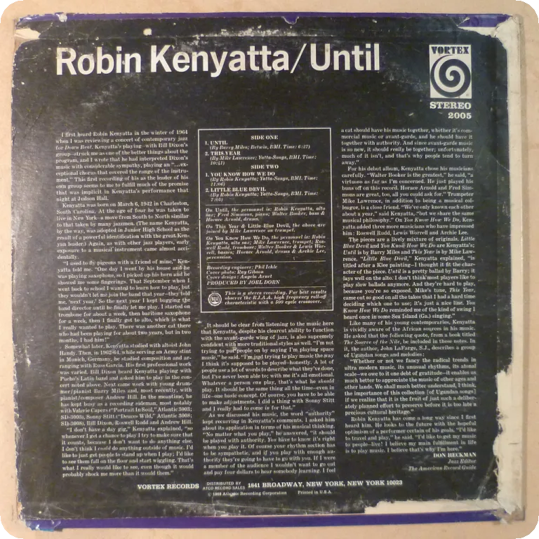 Trippy jazz fusion by the two buddhist artists, w/ insert, promo copy, sleeve has some wear, peel off on bottom front, writings on back, record has light occasional to hardly any noise, ranging from VG to EX.