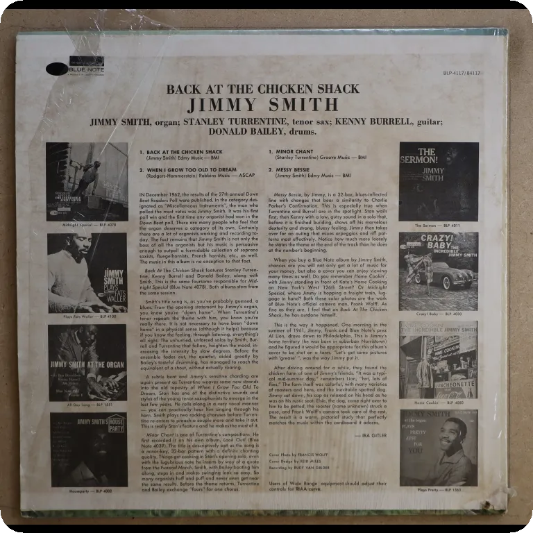 Jazz blues / soul jazz on top by the organ genius joined here by Turrentine, Burrell & Bailey. Sleeve in OG shrink with small peel off on top spine, corner punch hole on bottom spine, record has minor