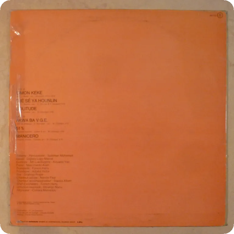 w/ the funk tune "Dje se ya hounlin", the afro disco "solitude", the hypnotic afro "51%" & the latin jazz "el manicero" all aranged by Manu Dibango while he was the national Ivory Coast Television