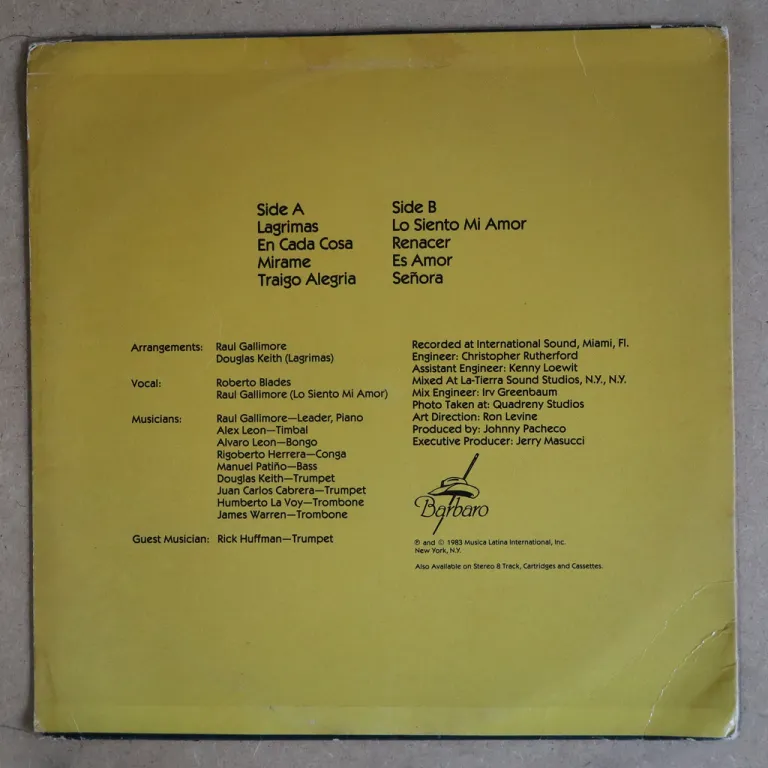 Dancefloor salsa & salsa romantica masterpiece from Miami. Sleeve has some wear, very reasonable to hardly any noise from marks, varies from very solid VG- to VG++ depending on parts.