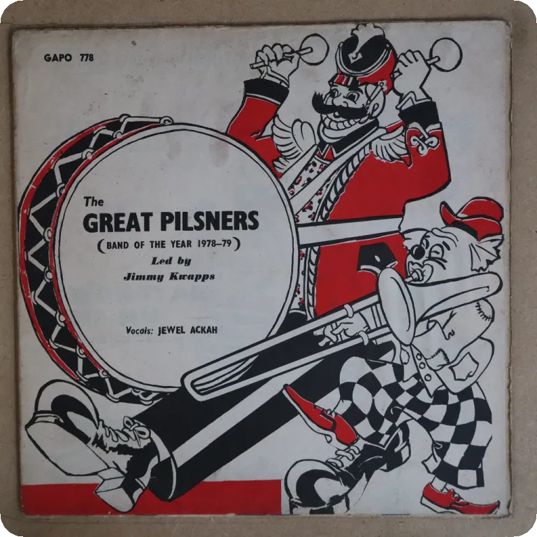 Consistent highlife LP, led by Jimmy Kwapps and w/ vocals by Jewel Ackah, sleeve has light aging & dirt wear, record is a bit noisy on intros then plays better, very solid VG- to VG/VG+ depending on
