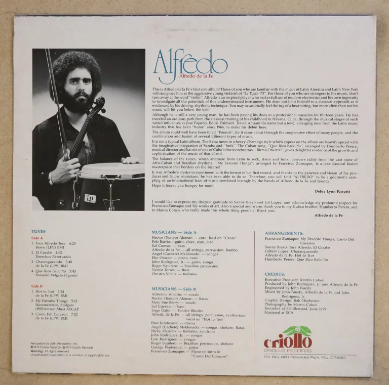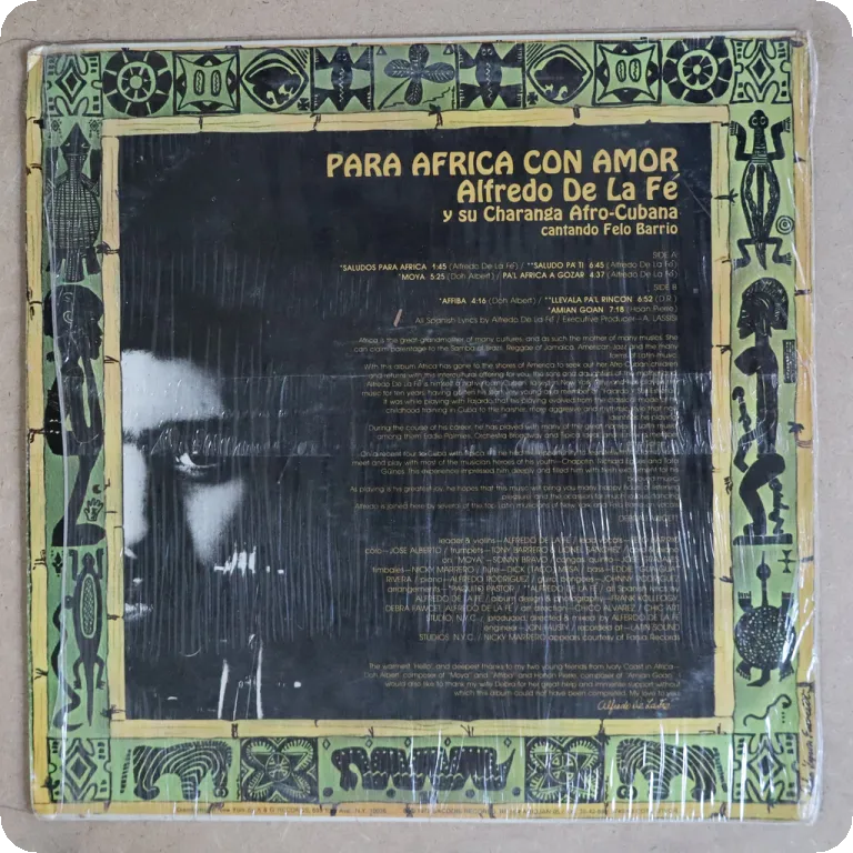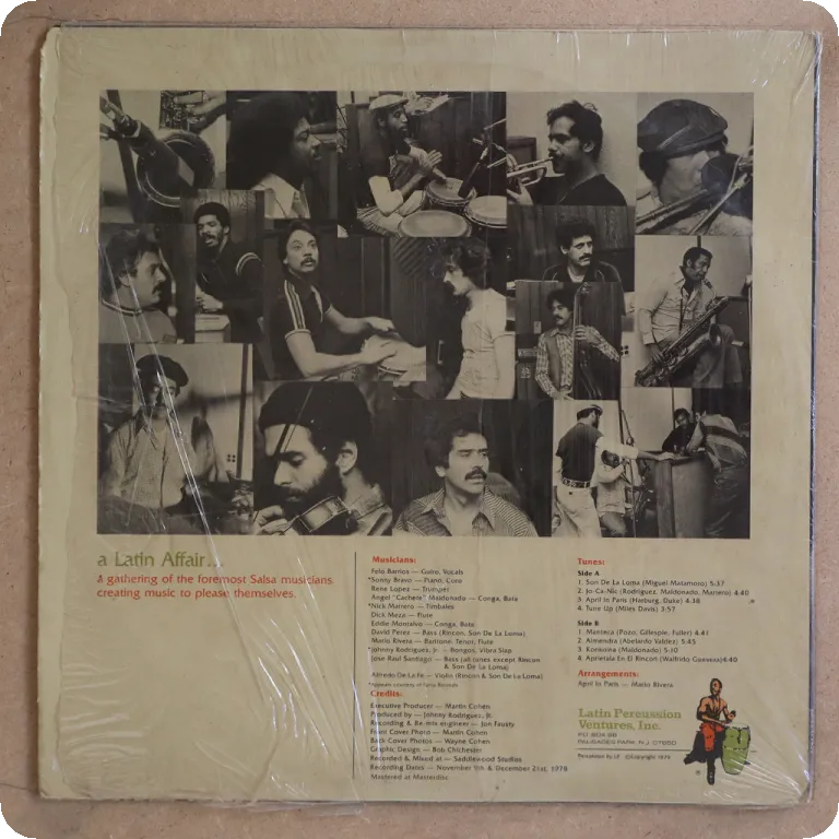 Late 70's salsa studio session w/ strong 60's descarga flavor, includes such musicians as Felo Barrios, Sonny Bravo, Rene Lopez, Nick Marrero, Alfredo de la Fe..."Manteca". Sleeve in shrink w/ some