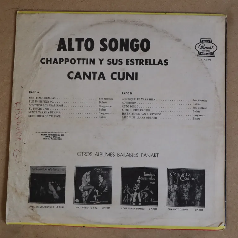 Sones & guarachas & charanga tracks, 70's RAMSA distributors press, plae blue labels, sleeve with some wear, beige water damage on bottom mouth corner, writings on labels, record plays nicely with