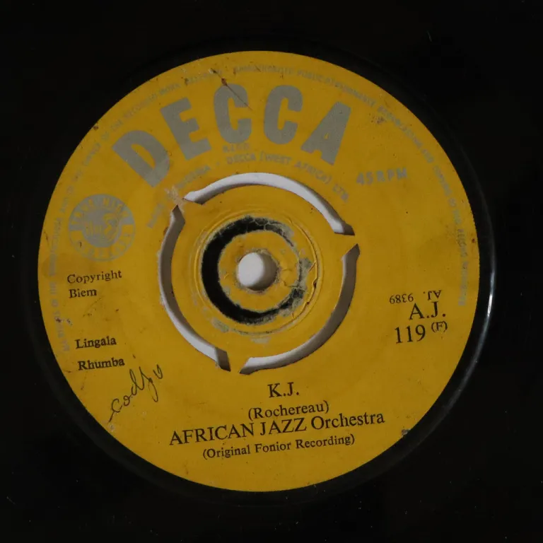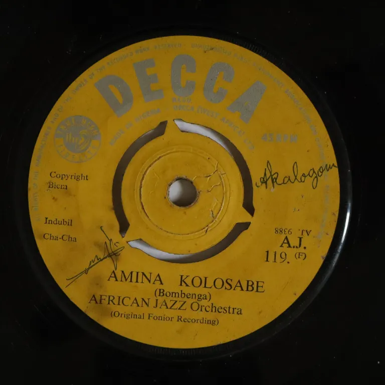 A cha cha cha & a rumba on this super scarce release by the Congolese super group. Writings, wear & dirt on labels. Record plays w/ reasonable to light though constant noise from marks