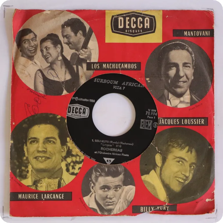 Check the pachanga cover of the classic "como bacalao" the great "ave maria lola" & the montuno "bina ringa", Congolese rumbas otherwise, and the rarest of the series, minor wear on cover, aging colouration & some peeling of the upper palstic sheet along mouth, record in top shape !