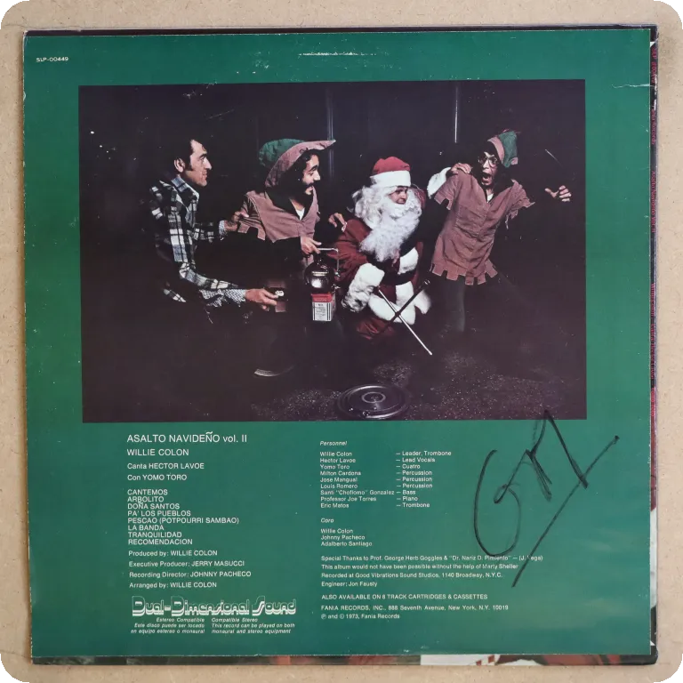 LP which first featured the smokin' bachata "La banda" that can rock any dancefloor on the planet. Also 2 solid salsa tipica "cantemos" & "arbolito". Minor wear, large writing on back, record in top