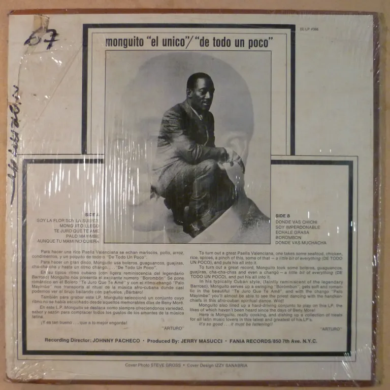 salsa, guajira, boogaloo & bolero as recorded by the voice. Still in OG shrink w/ minor wear, writings along mouth on back & labels, record plays w light to hardly any noise despite numerous marks.