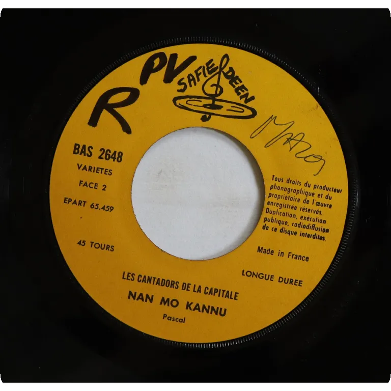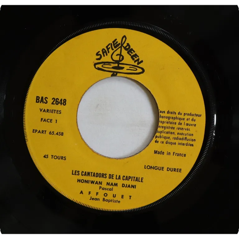 Afro latin tracks recorded in Cote d'Ivoire by Senegalese group, their rarest release for the Fiesta catalogue. Sleeve is missing, record has constant strong noise and two skips on B side intro (clip 1). Wear on labels.