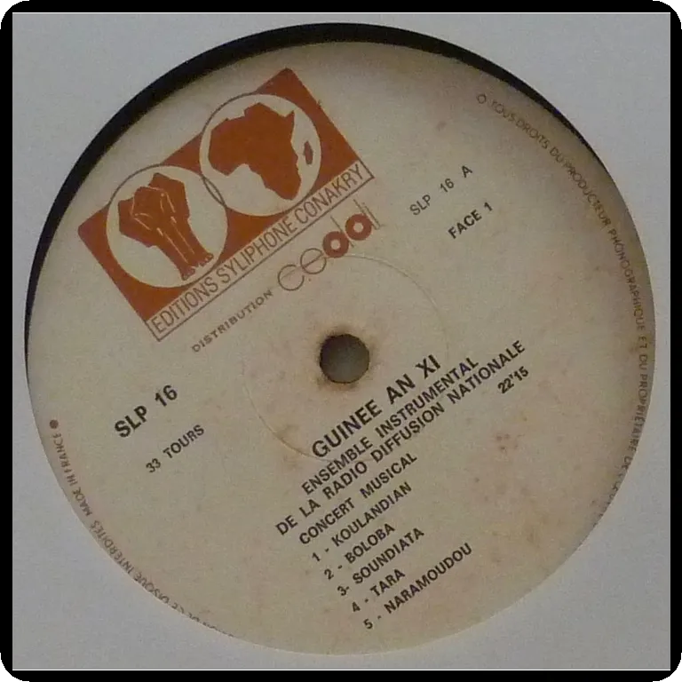 Deep Guinea manding folk masterpiece on scarce original first brwon & white Syliphone press. Sleeve is missing. Dirt on labels. Record has constant reasonable noise from numerous marks.
