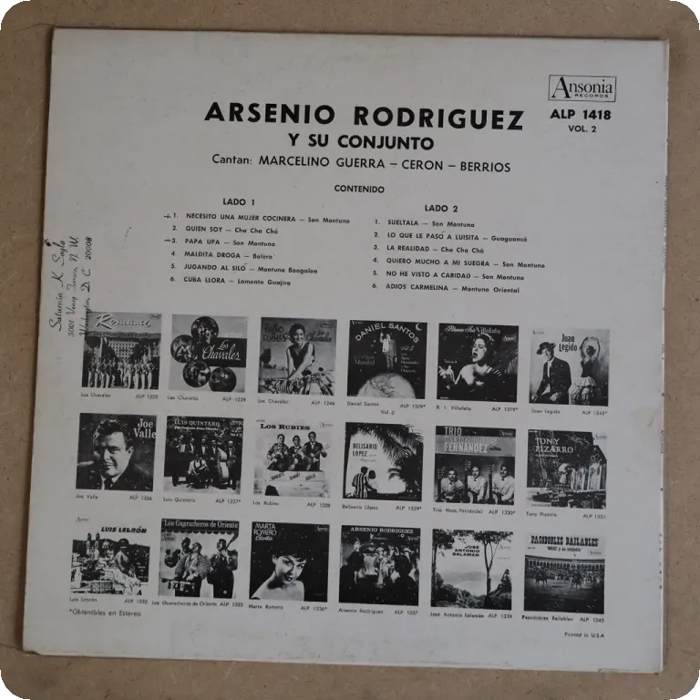 Raw sones montunos, pachanga & other latin beats by the Cuban legend. 70's issue, no deep groove, wear on cover, glue residue, small peel off & large writings on front, large writings on back, record