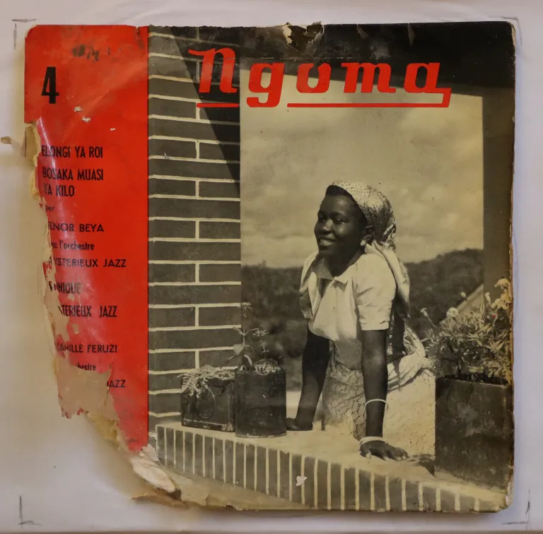 Congolese cha cha cha & rumbas as recorded by one of Ngoma label's proeminent figures. Sleeve has large bite along spine, strong dirt & aging, large peel off & writings on back, writings on labels, peel off on B side label. Record w/ constant strong noise from numerous marks.