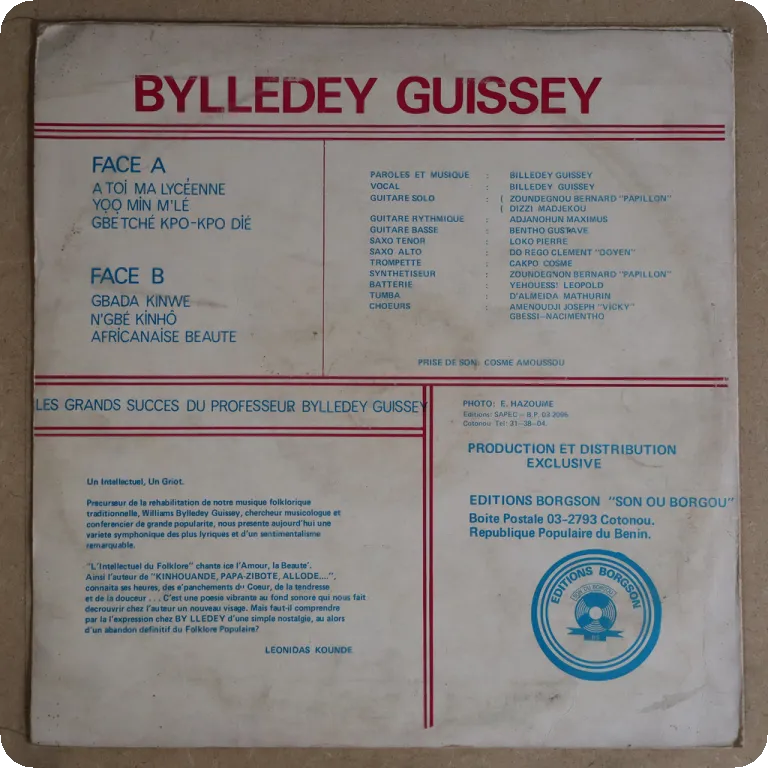 features the afro latin track "Mamie", a soukous at "Yolanda" & a deep agbadja/sato track. Sleeve has some dirt & aging, strong dirt along bottom mouth corner, bottom seam towards mouth, writings & rubber stamps on labels, vinyl plays nicely most of the time but has a few clicks on the latin tune & clicks for about a minute on the soukous tune from deeper marks.