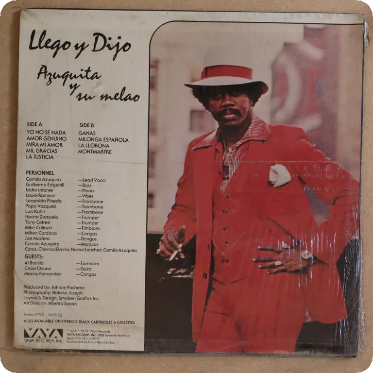 Classic salsa LP w/ several dancefloor winners by the master bass player y su orquesta, still in OG shrink w/ minor wear, vinyl plays sweetly with only thin marks.