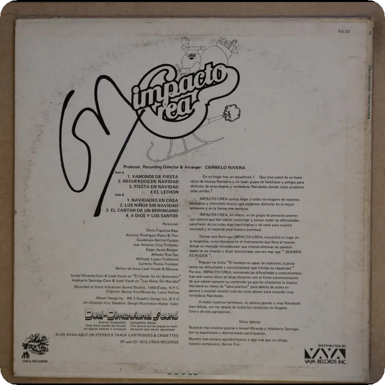 Check the dancefloor winner Fiesta en navidad on this otherwise ellow salsa tipica Xmas LP with special guests Ismael Miranda & Adalberto Santiago. Sonic second press. Some dirt & minor wear on cover