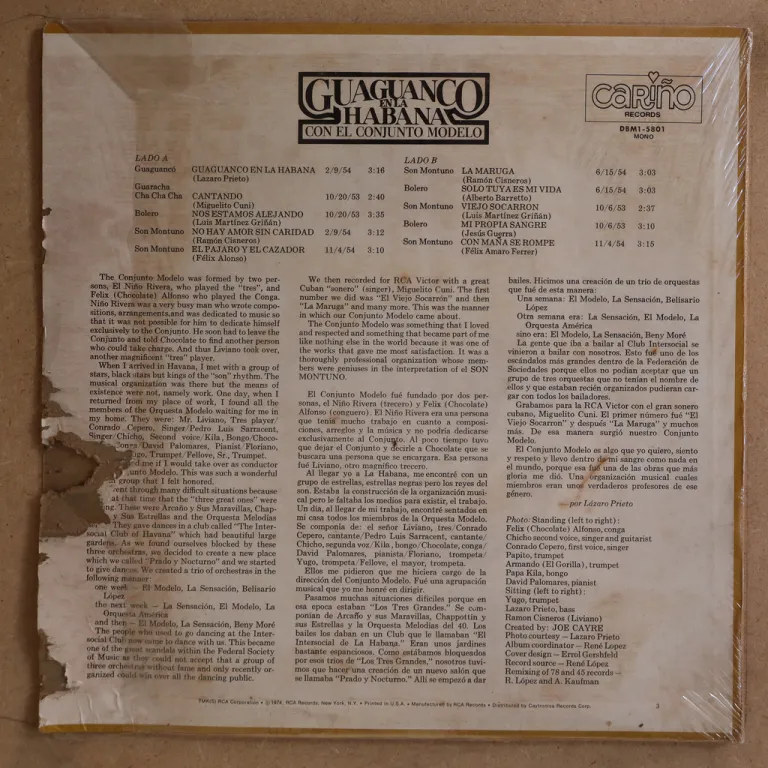 Deep & raw early 50's guarachas, guaguancos & boleros as recorded by the Cuban band. All tracks originally released on 78 rpm & 45 single. Sleeve in OG shrink, some wear on cover, several bites & peel off along mouth on back, plays greatly.