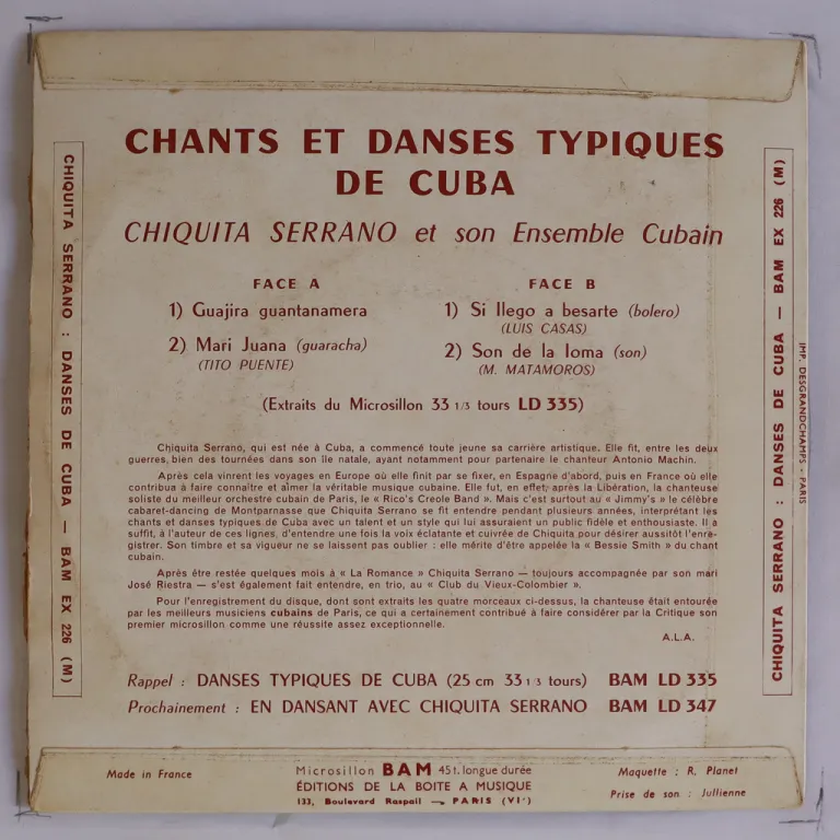 CHIQUITA SERRANO ET SON ENSEMBLE CUBAIN - Guajira guantanamera / Mari Juana / Si llego a besarte / Son de la loma