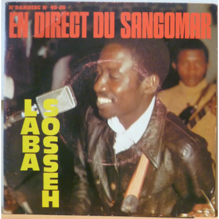 Live session recorded by the Senegambian salsero at the Thies Sangomar nightclub. Low saturated recording unfortunately. Sleeve has light age & dirt wear. Record has light occasional noise.