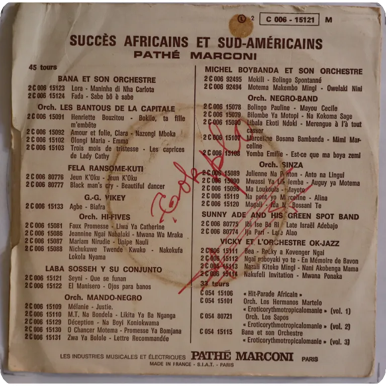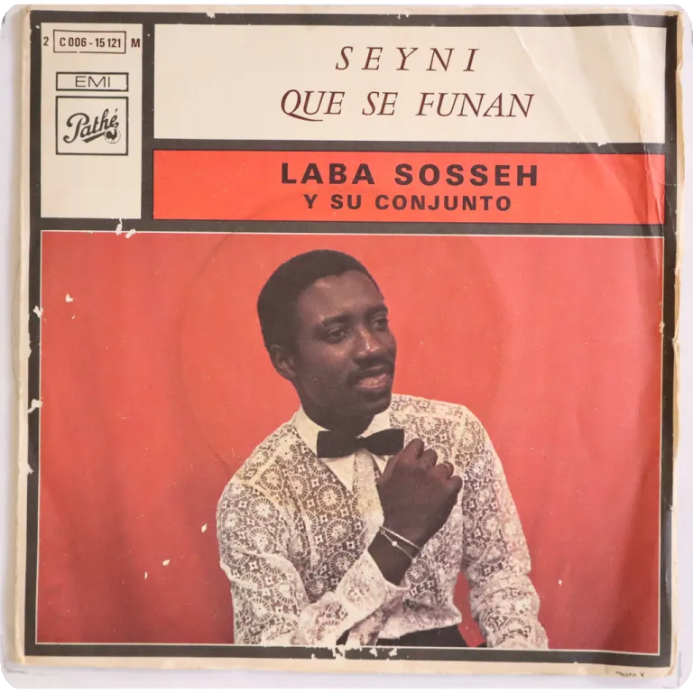 2 Cuban style montuno winners sung in wolof & Spanish by the Senegambian leader, sleeve has some aging & dirt, writings on back & A side label, record has light to very light noise from numerous light