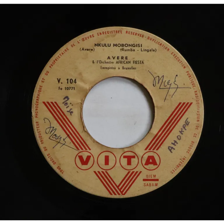 Top notch pachanga winner & a nice rumba on this mega rare single by the Congo legends, much off the radar as it's way too rare to buzz but has verything to becomre a most wanted. Writings, dirt & war on labels. Record has constant strong to very reasonable noise from numerous marks, crackier on edes and plays quite well on parts 2 of each side, ranging from weak VG- to VG. .