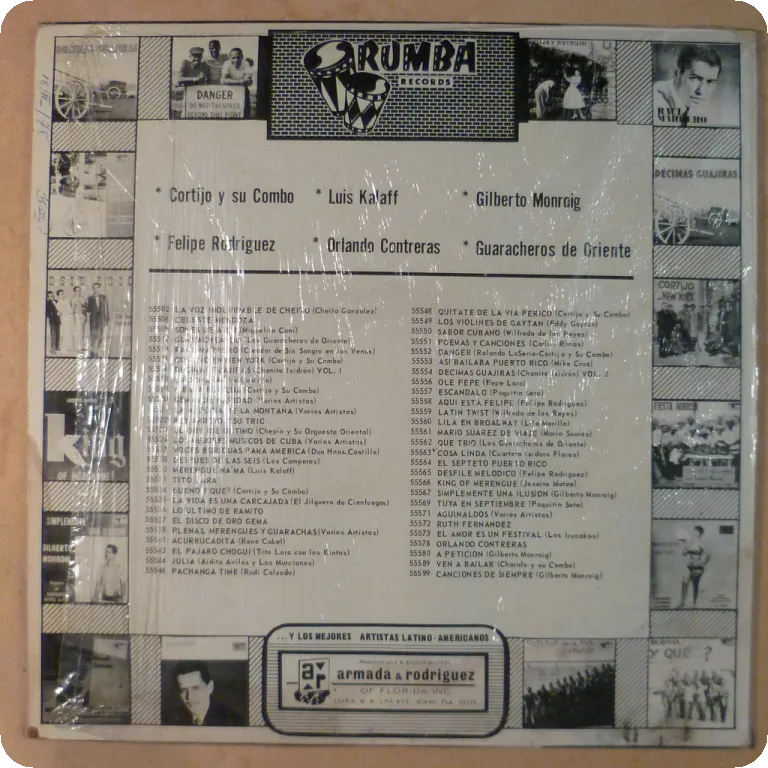Guarachas, guajiras & other wonderful latin rhythms on this scarce masterpiece, white label 70's reissue Armada Rodriguez distributor press, still in OG shrink, shop sticker on front, small writings