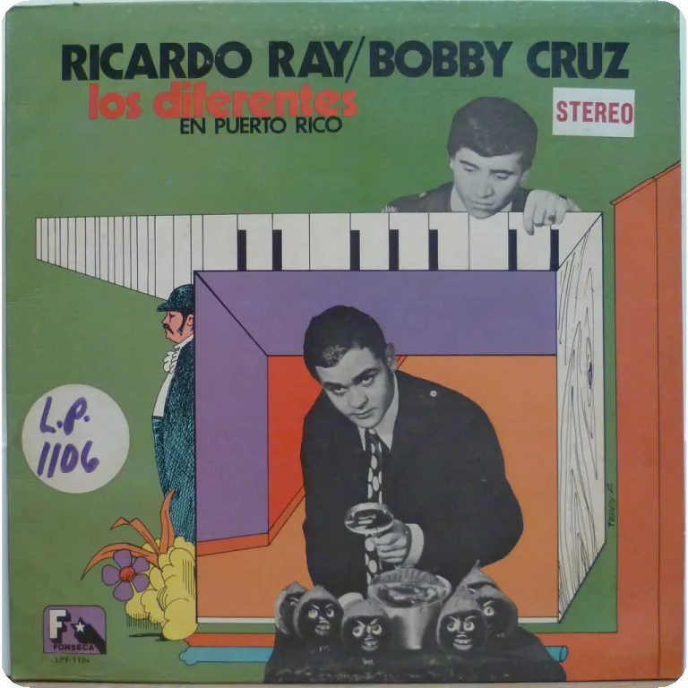 Latin jazz descarga, boogaloo, mambo & jala jala on this excellent LP by the Puerto Rican artist. Mono stuff press. Sleeve in OG shrink has dirt & aging, beige water damage along mouth & bottom, mold residues, bite on top spine corner, record is very clean and plays nicely with minor occasional noise.